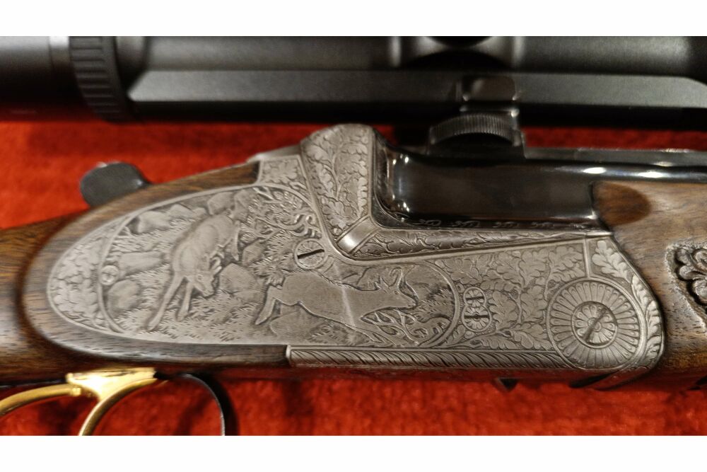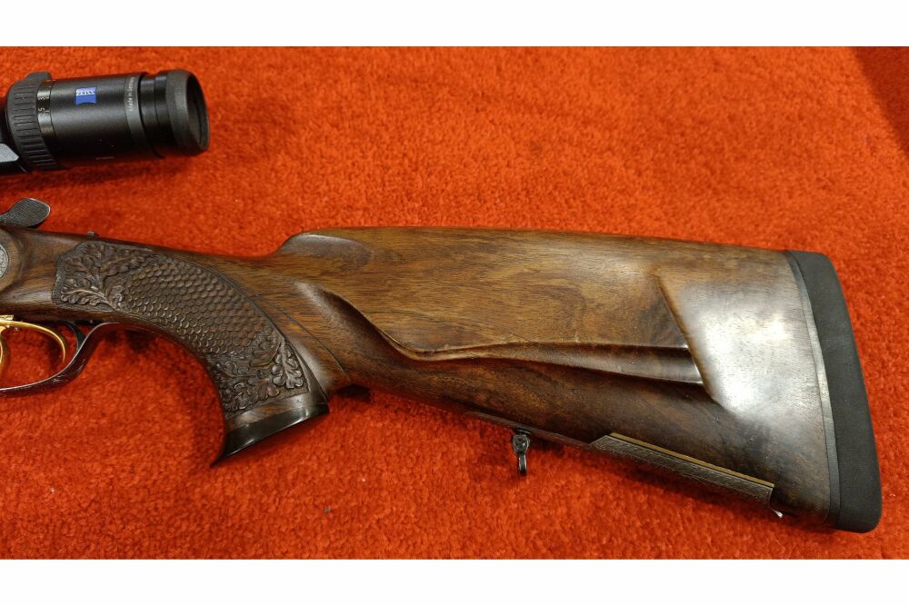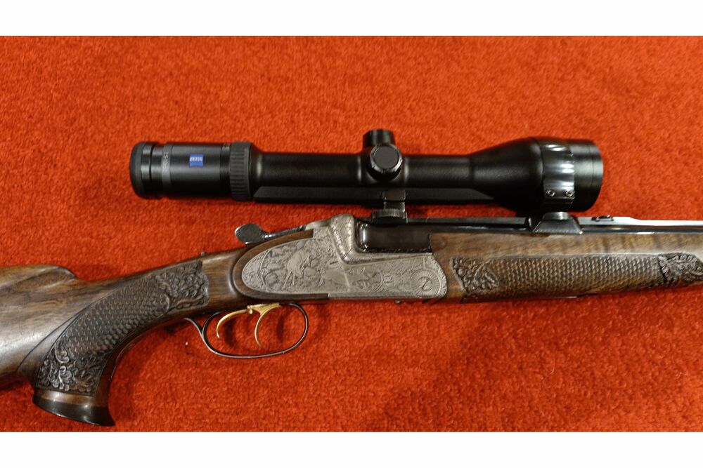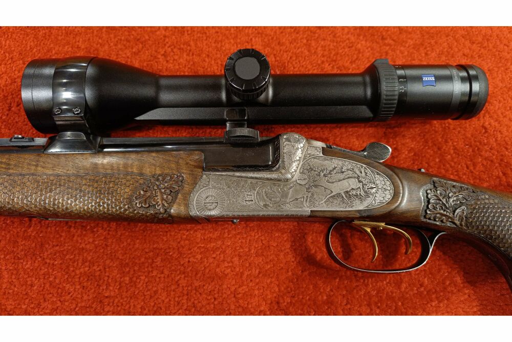 Bockbüchsflinte Veratschnig Ferlach, Kaliber 5,6x50RMag  20/76+Lauflänge 60cm+Zielfernrohr Zeiss Victory HT 2,5-10x50, Leuchtabsehen 60 auf Suhlereinhakmontage+goldnitrierte Abzüge+hinterer Schrotabzu... ...weiterlesen