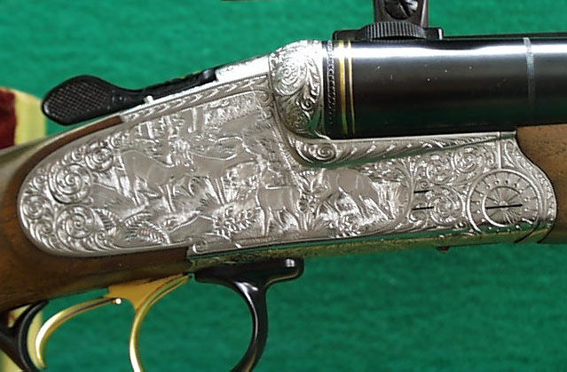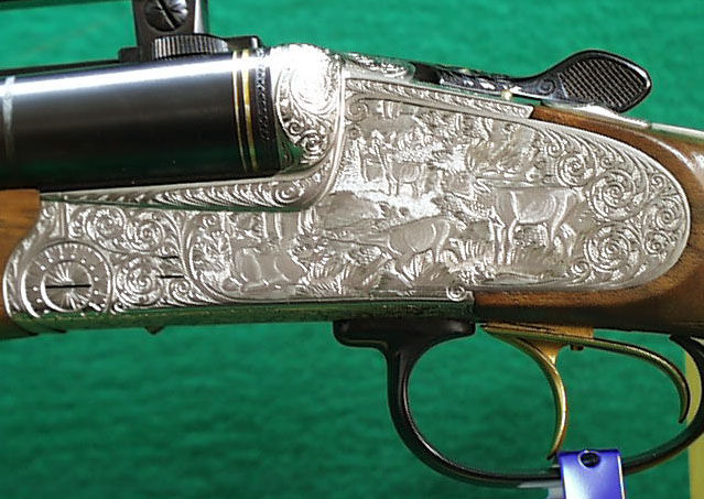 Krieghoff Drilllng, Neptun Primus, Kal.12/70 und .30-06, voll graviert, Rehe, Hirsch, vergoldete Abzüge, ZF Zeiss Diavari-Z 1,5-6x42, Zustand neuwertig