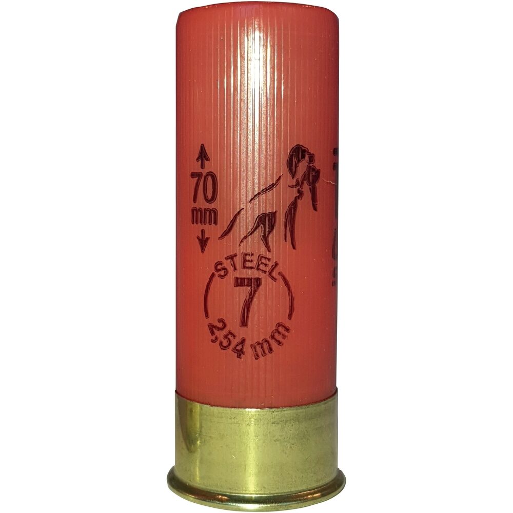 Hochwertige bleifreie Weicheisen-Stahlschrotpatrone mit einer gleichmäßigen Deckung. Die Schrotkugeln in Plastikhülse entsprechen den Anforderungen nach bleifreier Munition. Verwendet wird hochwertiges Vectan Pulver D20SE.