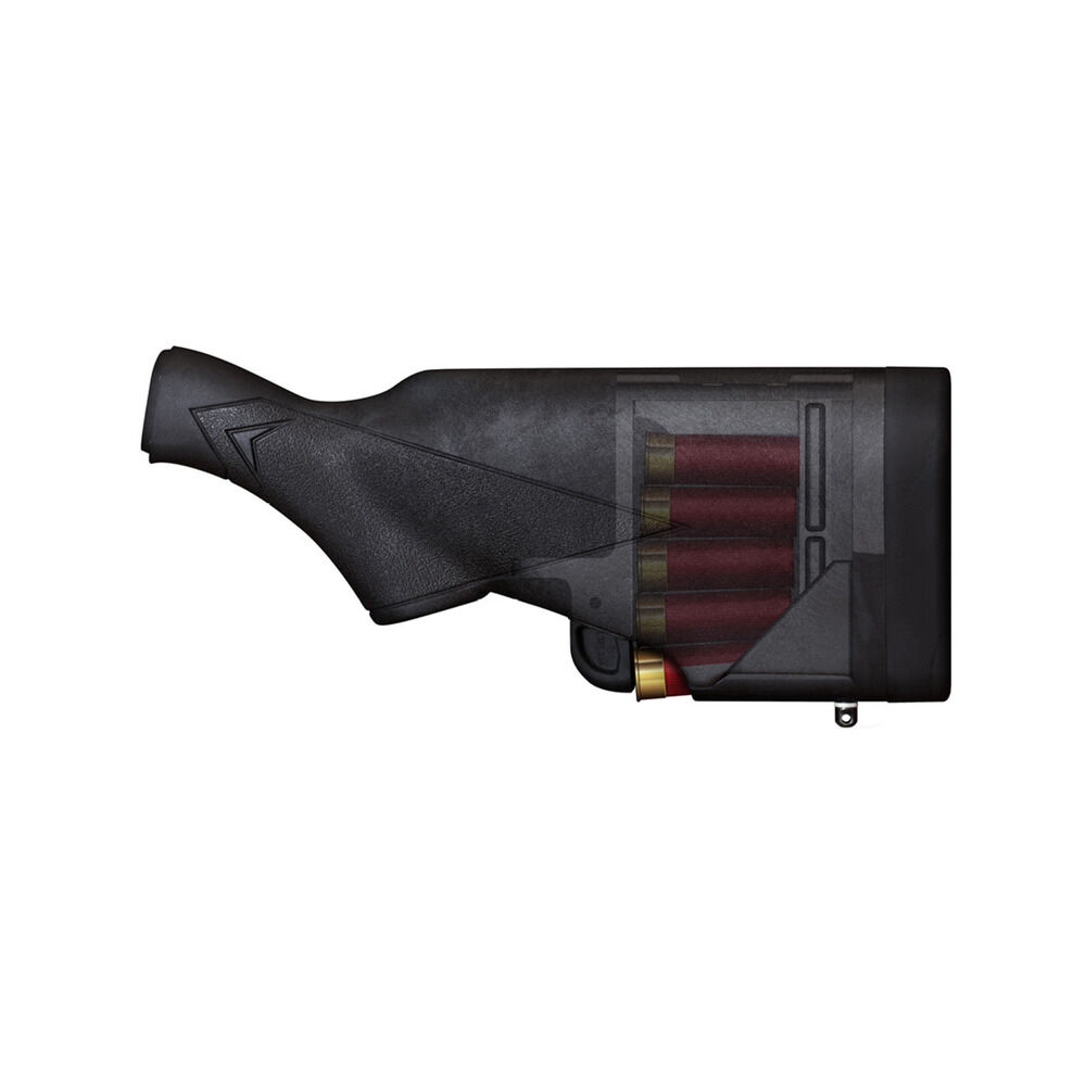 Kaliber 12GA (12/70, 12/76, 12/89), Flinte Mossberg Modell 500, 535, 590, 600, 835 und/oder Maverick 88, Hinterschaft Flash-5 mit Patronenfach für 5/fünf Patronen Synthetic schwarz, mit Recoil Pad/Schaftkappe und Riemenbügelöse montiert, für Rechts- oder Linkshänder geeignet, Lieferung ohne Schaftbefestigungsschraube, Code TLFL5-M5012 TactaLoad USA. Eine fachgerechte Montage wird empfohlen - Preis gültig für 1/einen Schaft Code TLFL5-M5012 - Blitzschneller Zugriff auf 5/fünf geschützte Reservepatronen!