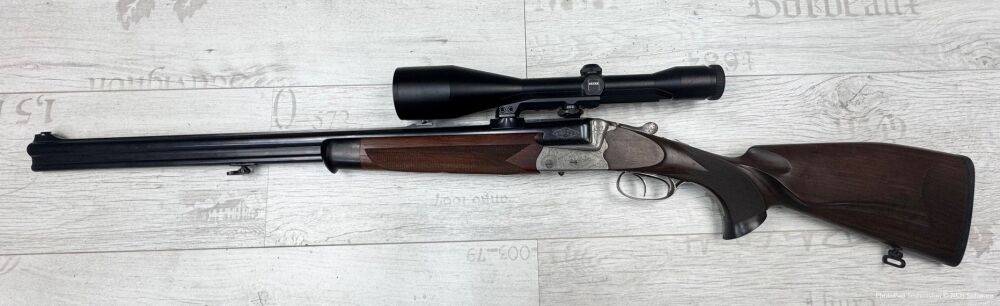 Verkauft / vermittelt wird im Kundenauftrag eine 7x65R mit Schrotlauf 16/70, montiert mit Zeiss Diatal ZM 8x56T* A 1 MAK Schwenkmontage, System graviert mit Arabesken, Schaft aus dunklem Maserholz, ba... ...weiterlesen