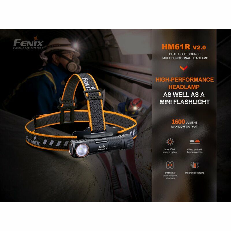 Die Fenix HM61R V2.0 ist eine wiederaufladbare Stirnlampe / Multifunktionsleuchte.