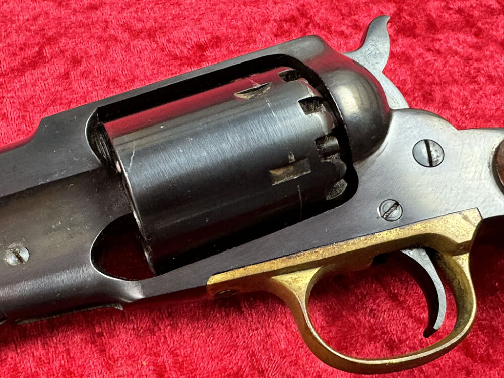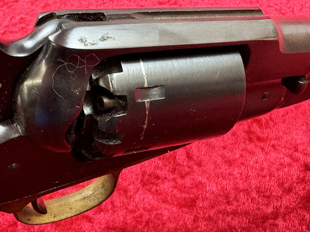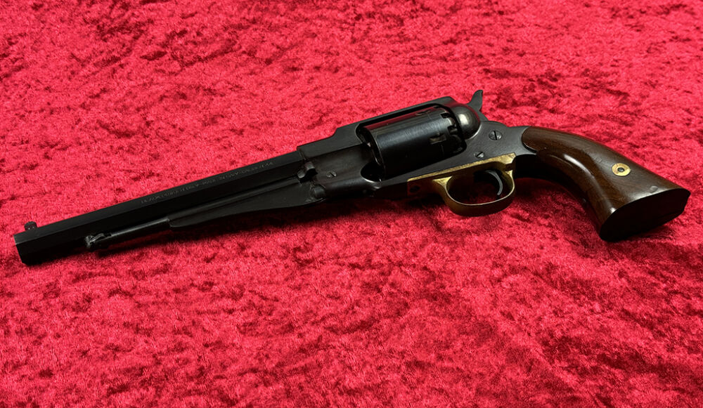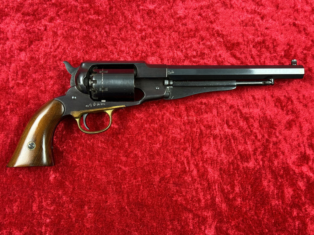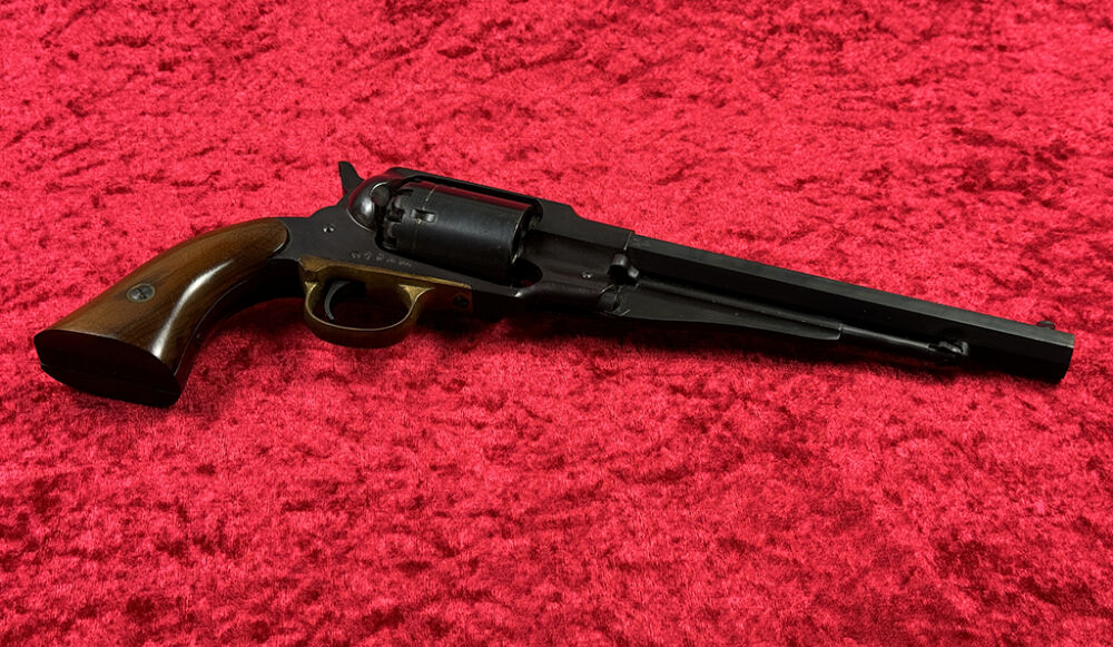 Diese Schwarzpulver Replik ist ein italienischer Nachbau des sehr erfolgreichen Remington New Model Army Revolvers. Er wurde bei FAP (Fratelli Pietta) aus Brescia gefertigt.
