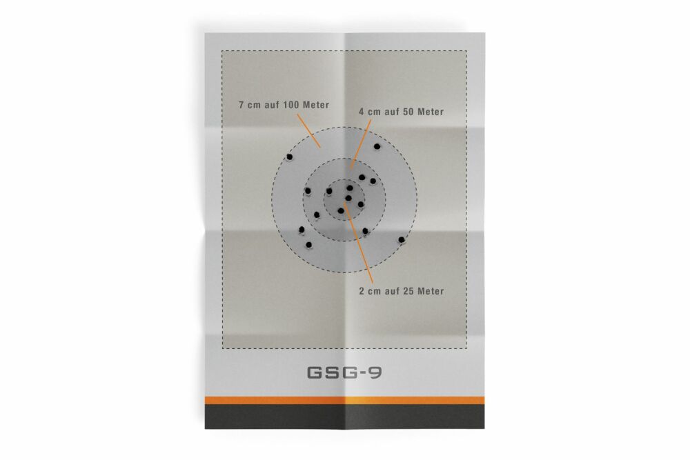 Die GSG-9 zeichnet sich durch ihre außergewöhnliche Schießpräzision aus. Auf einer Distanz von 25 Metern liegt der Streukreis im Mittel bei nur 2 cm, was auf eine hervorragende Zielgenauigkeit hinweist. Auf 50 Metern weitet sich der Streukreis minimal auf 4 cm aus, während auf 100 Metern die Streuung mit 7 cm immer noch beeindruckend gering bleibt.