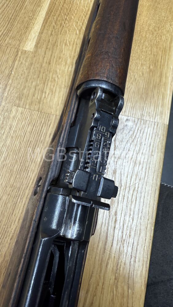 Das Visierblatt der Kimme war mal auf 300m geschweißt und wurde zurückgebaut, siehe Foto.