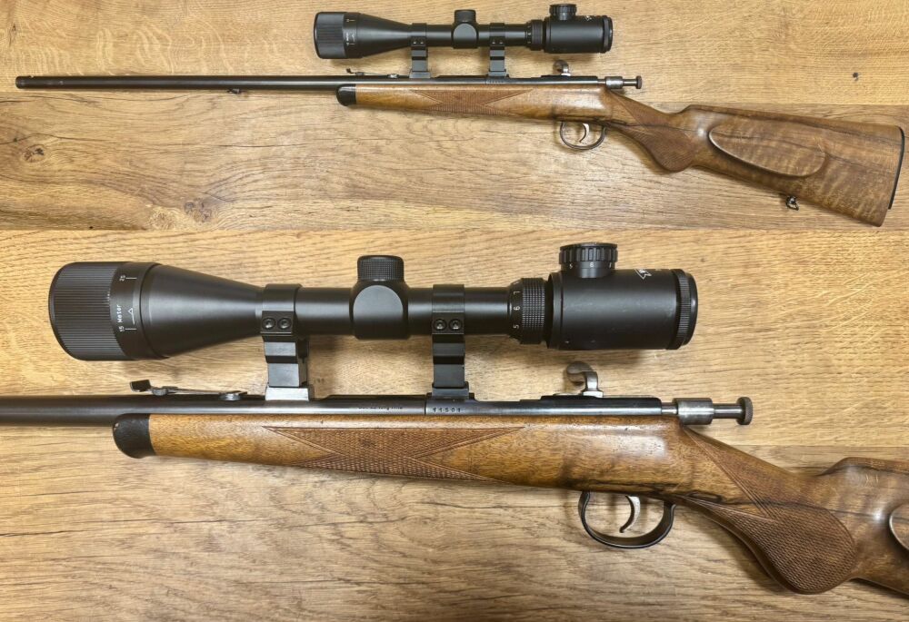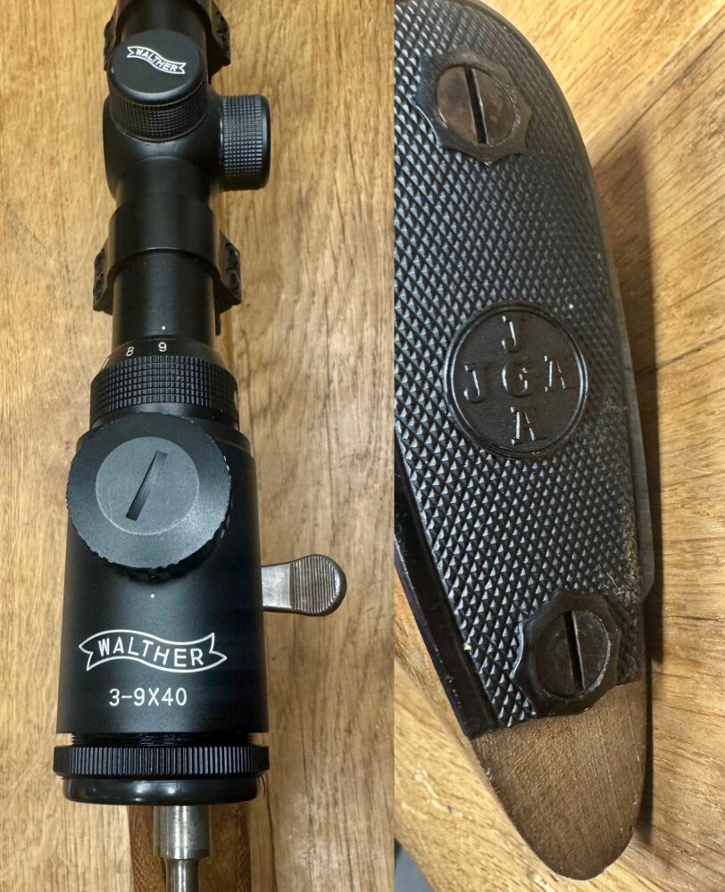 Auf dem Waffe ist per Festmontage ein Zielfernrohr Walther, 3-9x40, Abs. 4 mit Leuchtabsehen montiert.
