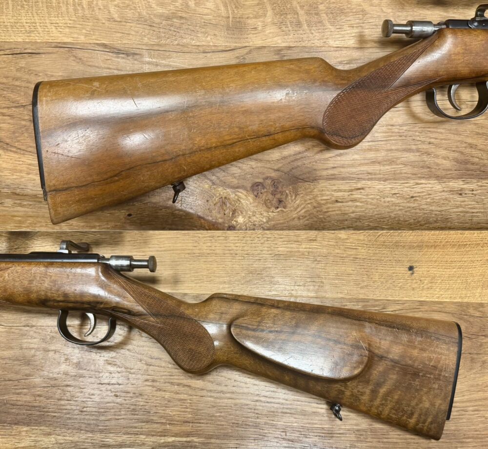 Verkauft wird eine: Einzelladerbüchse, Asnchütz, Kal.: .22lr. Lauflänge: 540mm Schaftlänge: 30mm Die Waffe hat kein Korn, eine defekte Schaftkappe und Riemebügel. Auf dem Waffe ist per ... ...weiterlesen