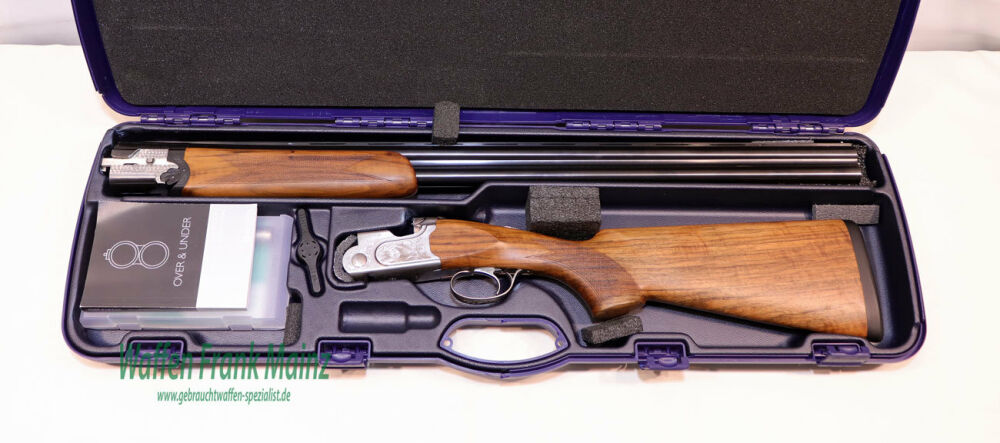 aus Samlungsauflösung, in neuwertigem Zustand, noch im Originalkoffer mit komplettem Zubehör und 5 Wechselchokes, elegante, führige Universalparcourflinte für Frau und Mann, mit 6mm ventilierter Laufschiene, fein graviertes Stahlsystem mit Jagdmotiven und flächendeckender Arabeskengravur, grau gebeizt, umschaltbarer Einabzug und Ejektor, gut gemaserter, neutraler Nussbaumschaft, Schaftlänge 370mm inkl. Gummikappe......eine hochwertige Universalflinte fürs ganze Leben....