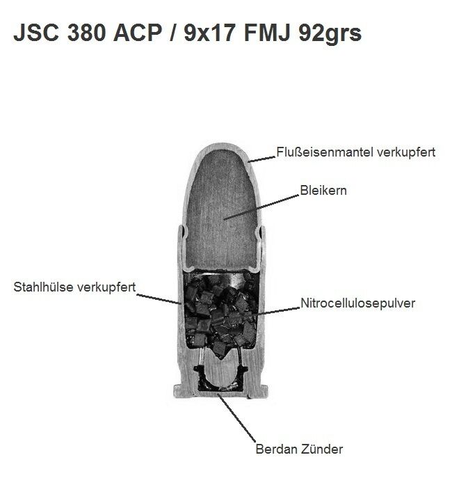 Munition JSC 380 BROWING COURT / 9mm kurz FMJ 92grs non-corrosive