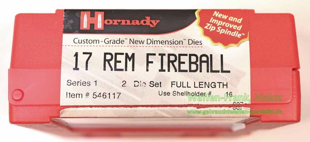 Hornady Matrizensatz 2-teilig, für Kaliber .17 Remington Fireball, Satz mit Vollkalibriermatrize (höhenverstellbarer Zündhütchenausstoßer) und Geschoßsetzmatrize, in Originalbox, Zustand 1-2