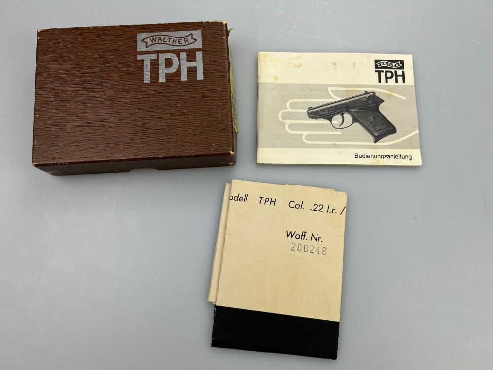 Walther TPH im Kaliber .22lr Gebrauchtwaffe Hersteller: Walther Modell: TPH Kaliber: .22lr Zustand: Gut Mit original Karton, Anleitung, Anschussscheibe Beschussjahr: 1976 Wie ka... ...weiterlesen