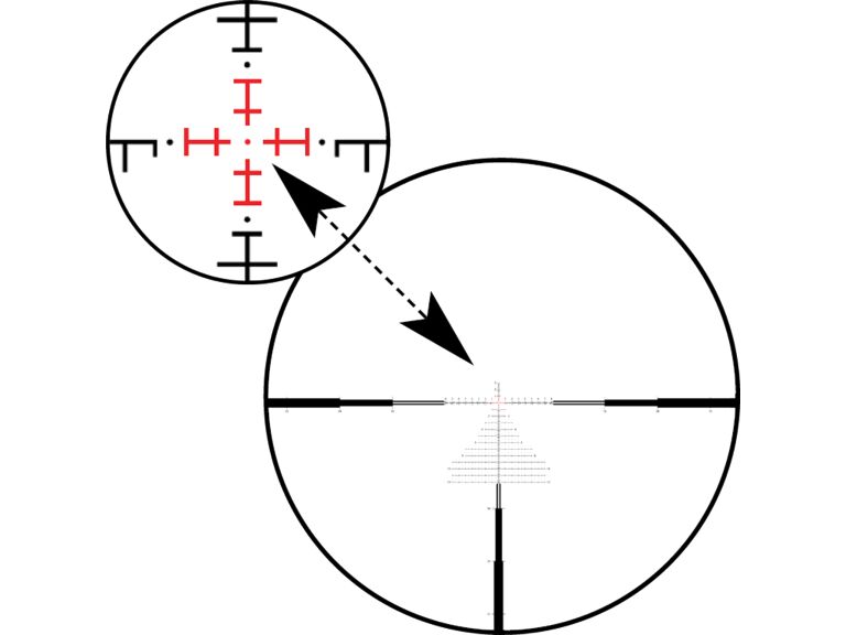 Tageslicht-helle LeuchtabsehenEin Leuchtabsehen, das auch bei hellem Tageslicht sichtbar ist, und eine vom Benutzer wählbare Beleuchtung in Rot oder Grün wird über fünf Intensitätsstufen gesteuert. Nur der zentrale Ausschnitt des Absehens wird beleuchtet, um einen besonders präzisen Haltepunkt zu gewährleisten.