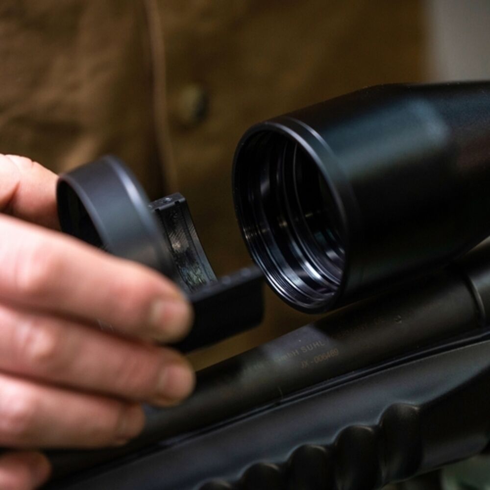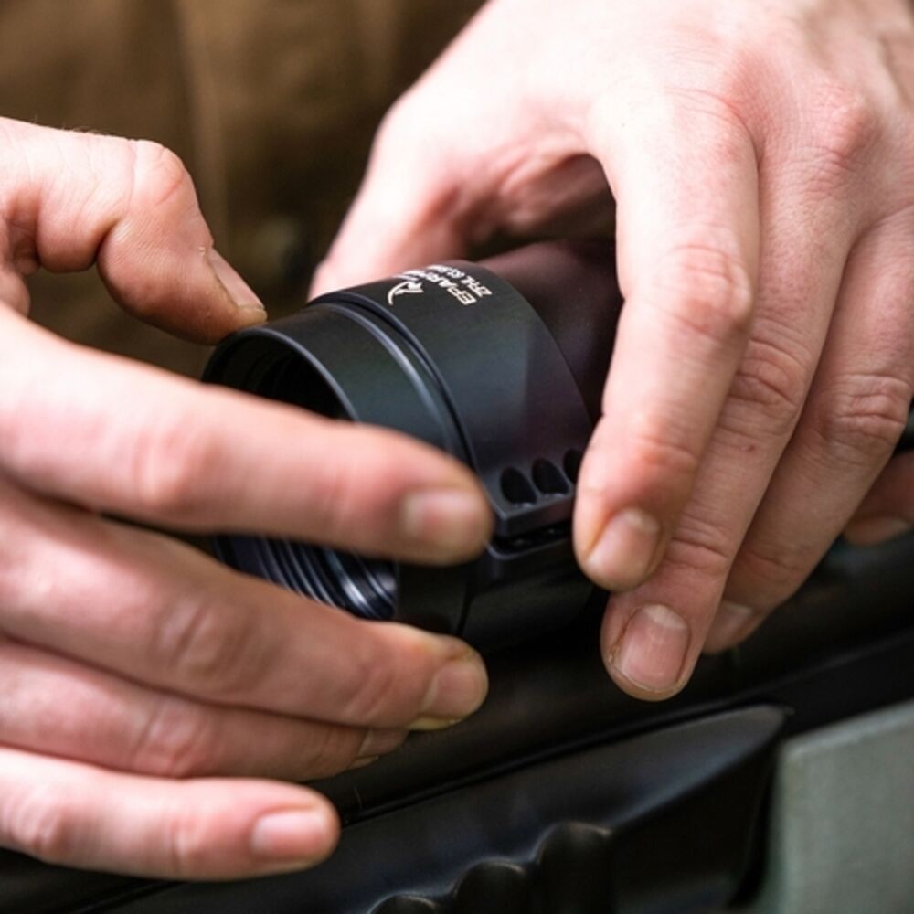 Der Adapter wird auf das Zielfernrohr aufgesetzt und verbleibt montiert auf dem Zielfernrohr. Sie haben zwei Waffen mit dem EP Arms Rotoclip ausgestattet und können so ohne weiteres Einschießen der Waffe das Gerät einfach aufstecken und mit der passenden Waffe zum Ansitz aufbrechen.