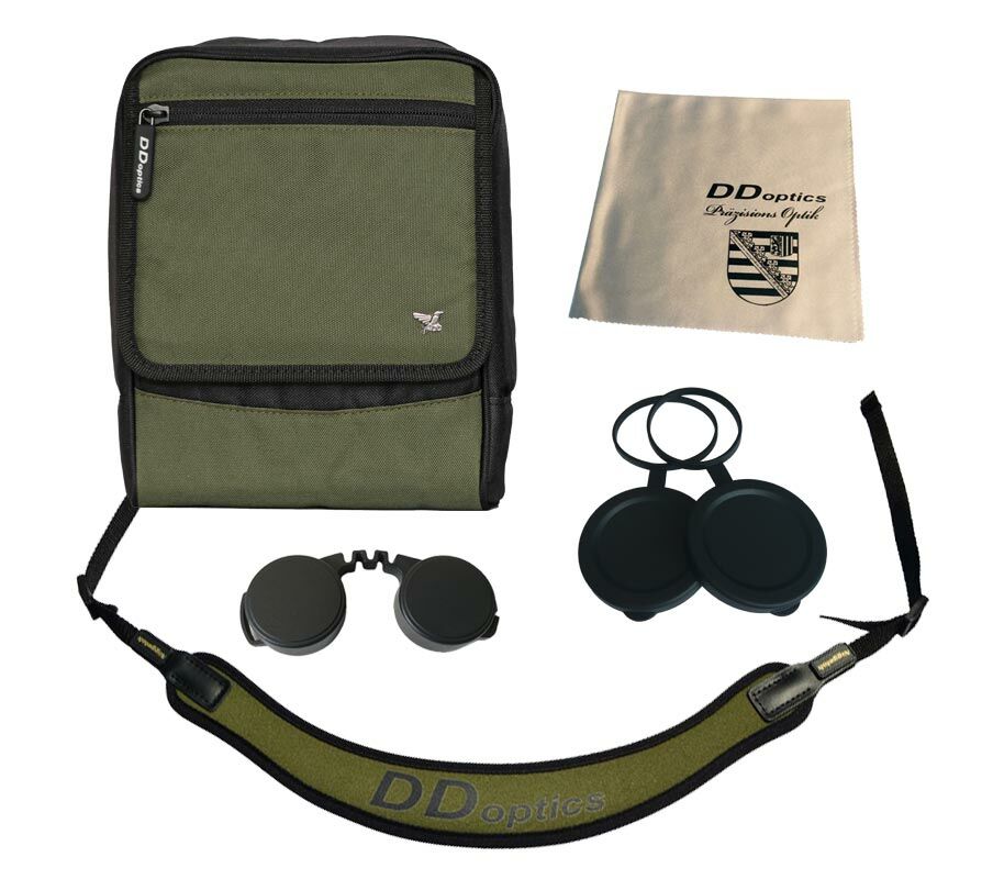 - wird mit Fernglastasche, Niggeloh-Trageriemen und Schutzkappen für Objektiv sowie Okular ausgeliefert