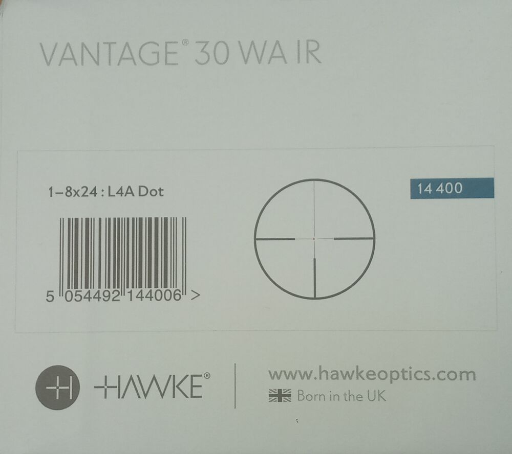 Zielfernrohr Hawke Vantage 30 WA IR 1 - 8 x 24 L4A DOT Absehen beleuchtet mit 5 Helligkeitsstufen Rot/Grün Mittelrohrdurchmesser 30 mm Gesamtlänge 267 mm Sichtfeld 38,3 - 4,8m auf 100M... ...weiterlesen