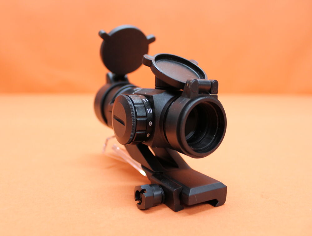 11 Helligkeitsstufen, 2mm/10m (=ca. 3/4MOA) Click, Metallgehäuse. Incl. Ringmontage f. Weaver-/Picatinnyprofil, Flip-Covers. Ohne Batterie(n)! (Empfohlen für Airsoft-/ Luftdruck-/ Kleinkaliberwaffen)