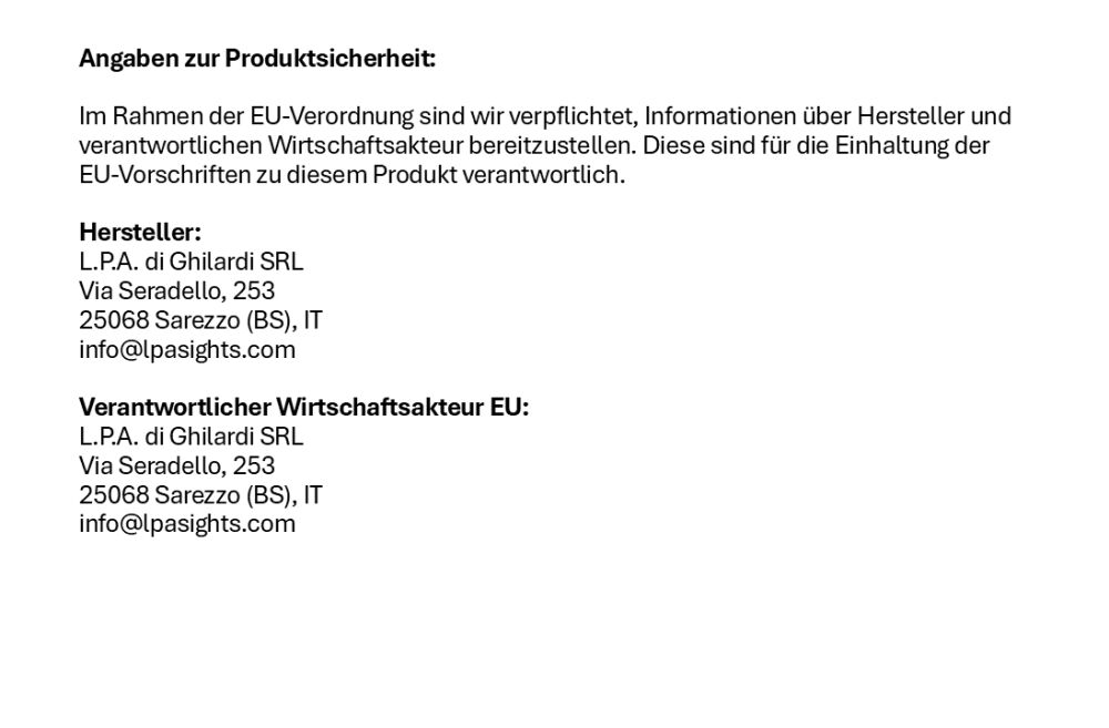Im Rahmen der EU-Verordnung sind wir verpflichtet, Informationen über Hersteller und verantwortlichen Wirtschaftsakteur bereitzustellen. Diese sind für die Einhaltung der EU-Vorschriften zu diesem Produkt verantwortlich.