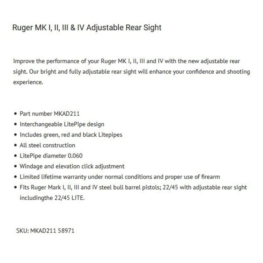 Hier direkt bestellen → →HIVIZ Visier Fiber Ruger MK I-IV+22/45 .22lrKaliber.22lrWaffenherstellerRugerModellFiber 3-ColorFabrikatMK I/II/III/IV+22/45Ruger Pistole Modell Mark I, II, III und IV Steel B... ...weiterlesen