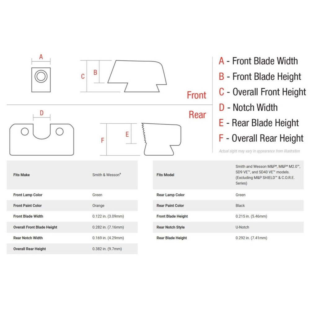 Pistole Smith & Wesson M&P®, M&P® M2.0?, SD9 VE? und SD40 VE? Modelle nicht für M&P SHIELD? & C.O.R.E. Series geeignet, HD XR Nacht Visierset grün/schwarz Outline und schmales Visierkorn grün/Dot orange selbstleuchtend, Code SA637 Trijicon USA. Nacharbeiten sind eventuell erforderlich - eine fachgerechte Montage wird empfohlen!