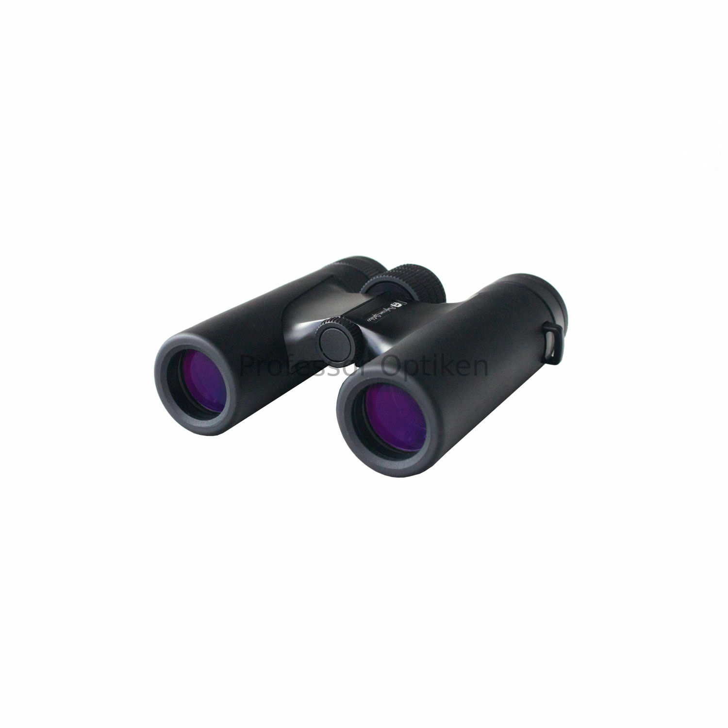 Die Augenmuscheln der Nürburg-Serie verfügen über eine Z-Rastung und damit über eine zusätzliche Mittelstellung. Die schwarze Gummiarmierung ist nicht nur besonders rutschfest, sondern auch besonders widerstandsfähig gefertigt. Das Nürburg 8x26 ist mit Stickstoff gefüllt und absolut wasserdicht. Eine Nano-Beschichtung sorgt zudem dafür, dass die Linsen nicht beschlagen. Wie alle Ferngläser von Professor Optiken, hat auch das Nürburg 8x26 einen Stativanschluss.
