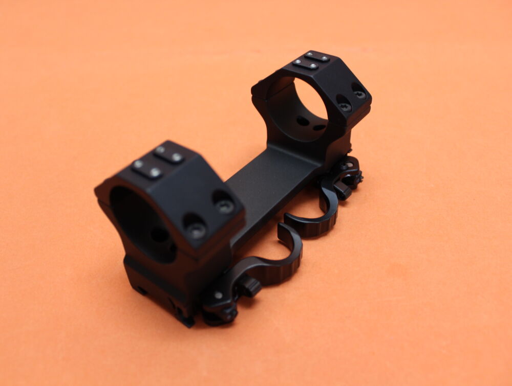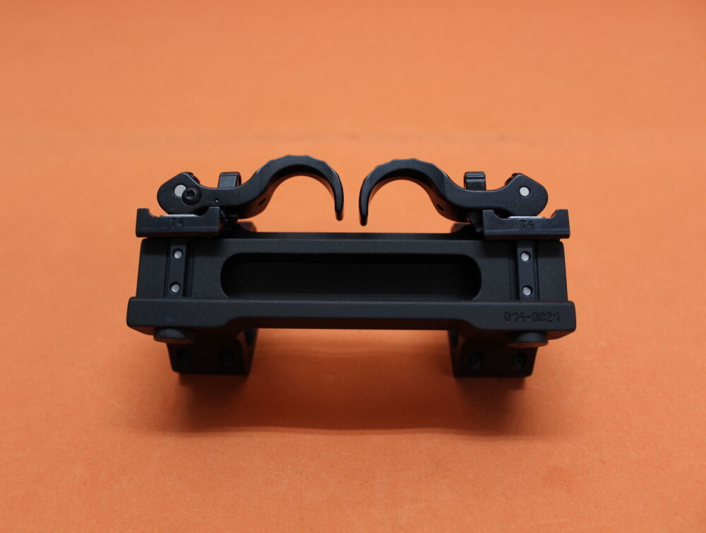 Blockmontagen aus hochfestem Aluminium aus dem Vollen gefräst; harteloxiert nach Mil-Spec. Typ III mattschwarz. Lieferbar ohne oder mit Vorneigung; sehr wiederholgenau und präzise; erhältlich mit Sicherheitshebeln oder Muttern.