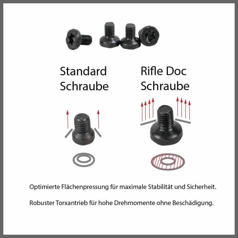 Für die Montage empfehlen wir die Verwendung einer Schraubensicherung. Unsere Schraubensicherung von Rifledoc wurde speziell entwickelt, um beste Haltewerte bei einer schussfesten Montage zu garantieren.
