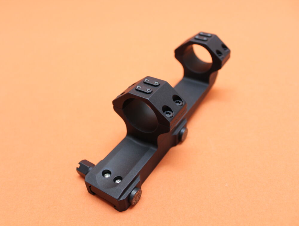 Blockmontagen aus hochfestem Aluminium aus dem Vollen gefräst; harteloxiert nach Mil-Spec. Typ III mattschwarz. Lieferbar ohne oder mit Vorneigung; sehr wiederholgenau und präzise; erhältlich mit Sicherheitshebeln oder Muttern.