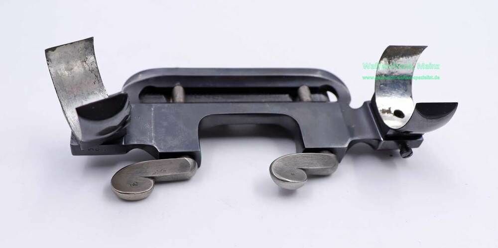 ausgelagerte ZF-Stahlaufschubmontage, mit 26mm Halbringen, passend für Drillinge, um gleichzeitig auch über die Schiene schnelle Schrotschüsse abgeben zu können, oder für Rechtsschützen mit linkem Zielauge...einzelstück EUR 75,-