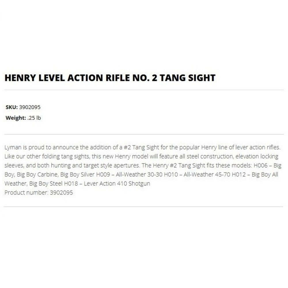 Hier direkt bestellen → →Lyman Diopter No.2 Henry Big BoyWaffenherstellerHenryFabrikatBig BoyModellPeep Tang SightHenry H006 Big Boy mit Carbine, Big Boy Silver H009, All-Weather 30-30 H010 & 45-7... ...weiterlesen