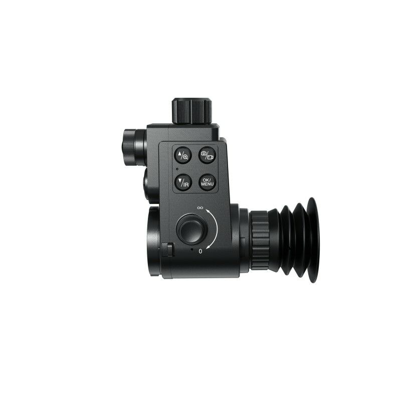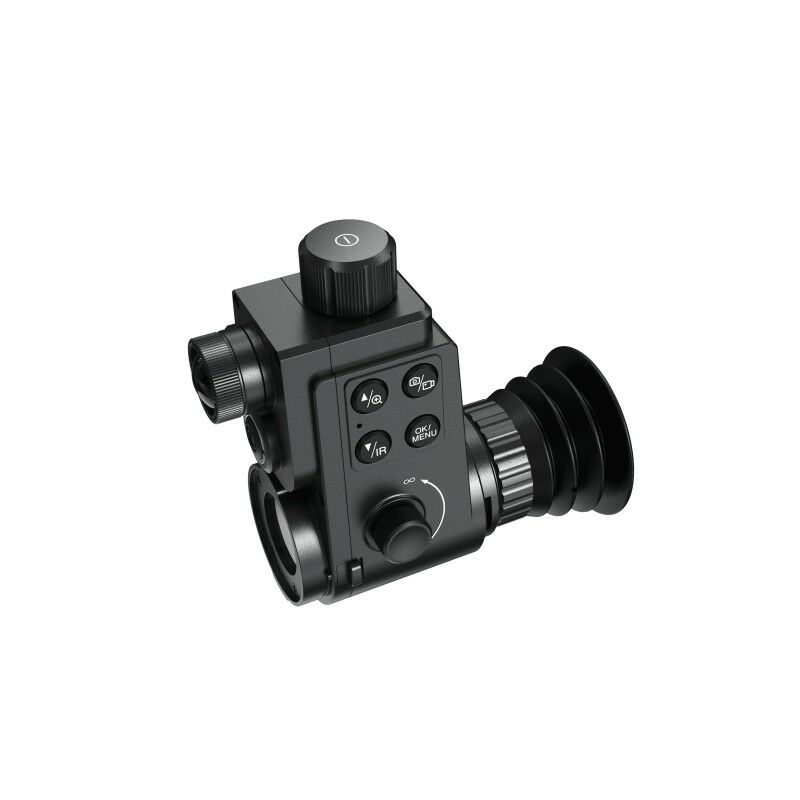 Das Sytong HT-88 ist das neuste Dual-Use-Nachtsichtgeräte aus dem Hause "Sytong". Im Vergleich zu seinen älteren Brüdern ist das Sytong HT-88 zudem mit einem größeren HD-OLED-Display mit einer Auflösung von 1440 x 1080 Pixeln ausgestattet. Ein fokussierbarer IR-Strahler (940 nm, absolut wildsicher), in 3 Stufen einstellbar, ist bereits im Gerät integriert. Die Fokussierung des Gerätes ist, wie auch die Picatinny-Aufnahme für den Infrarot-Strahlers, seitlich platziert worden.