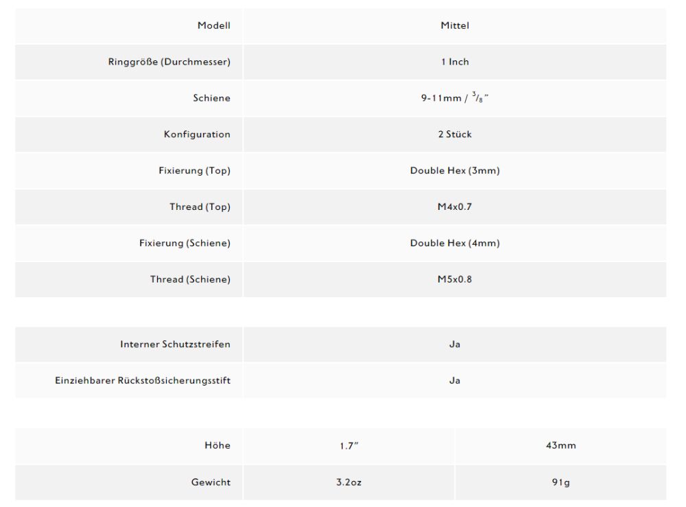 Modell: Match Ring Mount, 9-11mm Prismenschiene, Tubus: 1"