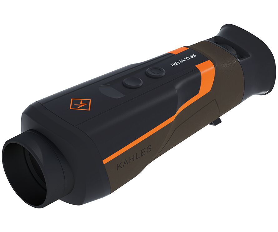 Wärmebildkamera Kahles Helia TI 35, optimiert und gezielt auf die Bedürfnisse von Jägern abgestimmt. Eine gelungene Kombination aus intuitiver Handhabung und guter Bildleistung. Die Bedienelemente des Gerätes sind einfach aufgebaut und auf das Minimum von zwei Bedienknöpfen reduziert, um das Gerät auch im Dunkeln problemlos einsetzen zu können. Dank der ausgezeichneten Abbildungsleistung ideal zur Beobachtung von Tieren oder anderen Objekten mit Wärmestrahlung. Mit einem großen Sehfeld von 19 m auf 100 m bestens geeignet für Ansitz und Pirsch. Durch die hohe Detailwiedergabe und das kontrastreiche Bild macht es die Nacht zum Tag. Eine intelligente Ein- bzw. Ausschaltautomatik mit Neigungs- und Bewegungssensor macht das Gerät sehr energiesparend und gewährleistet so eine lange Laufzeit. Die Abmessungen des Gerätes sind sehr kompakt und finden immer einen Platz in Jackentasche oder Rucksack. Durch die ergonomische Bauform liegt das Gerät angenehm in der Hand. Durch das abrollsichere Design und die durchdacht platzierten Bedienelemente ist das Wärmebildgerät in sekundenschnelle Einsatzbereit.