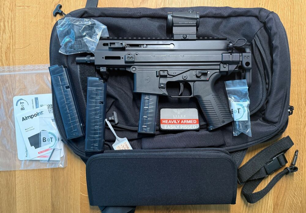 Die Waffe verfügt über den B&T Teleskopschaft sowie eine Tri-Lug kompatible Mündungskomponente. Daher super kompakt!
