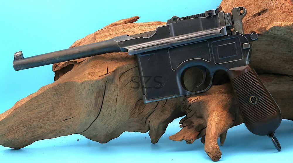 halbautomatische Pistole - Ordonnanzwaffe Antik, da Sammlerstück Hersteller: Mauser Oberndorf Modell: C96 Kaliber: 7,63Mauser Beschusszeichen: kaiserliche Abnahmestempel Waffe nummerngle... ...weiterlesen