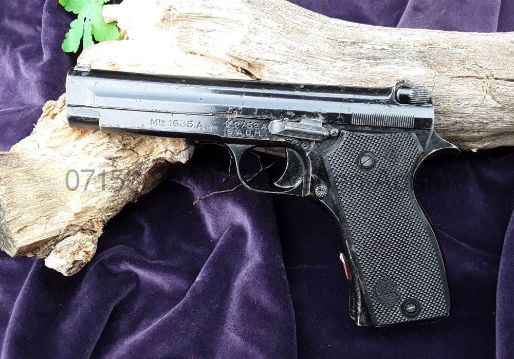 Petter franz. Dienstpistole, bei der Wehrmacht in Verwendung und gestempelt, Vorläufer der bekannten SIG210, s gebrauchter Zustand, mit Flecken und Närbchen, Lack Finish.