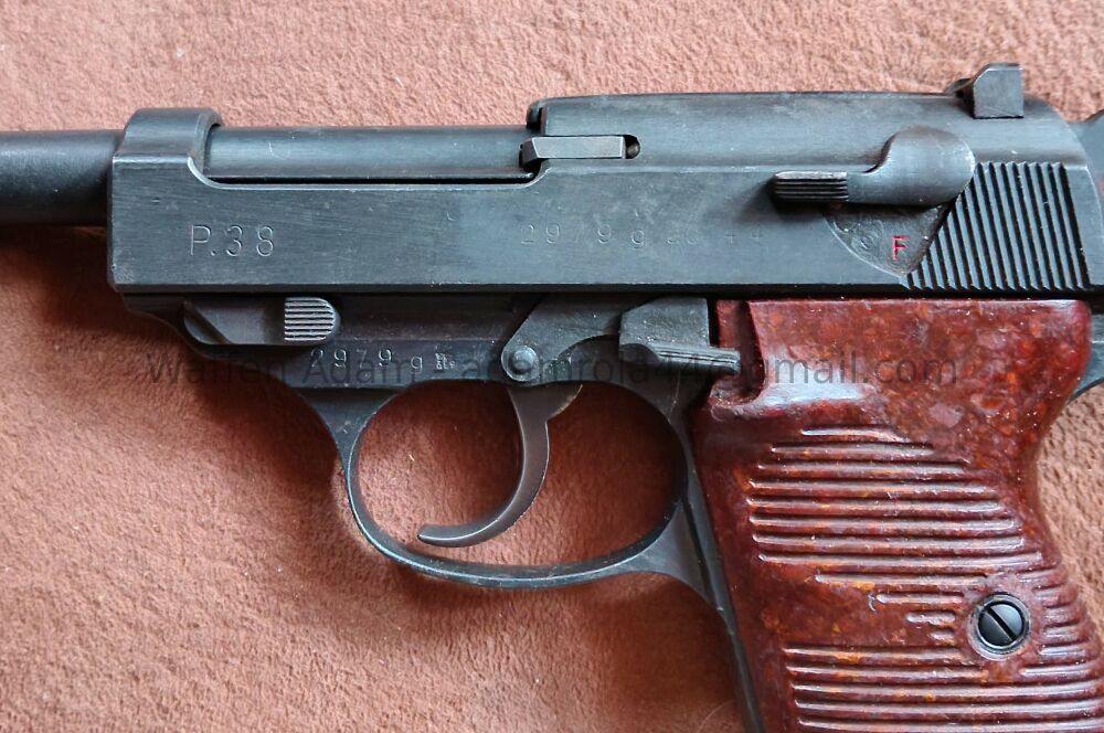 Walther P.38, ohne gültigen Beschuss ohne Fremdstempel, Lauf sehr gut, Altersbedingte Kratzer und Närbchen möglich, nummerngleich , braune Bakelit Griffschalen, BW Magazin, Bilder sind Bestandteil der Beschreibung, Irrtum vorbehalten.
