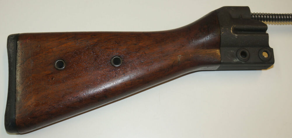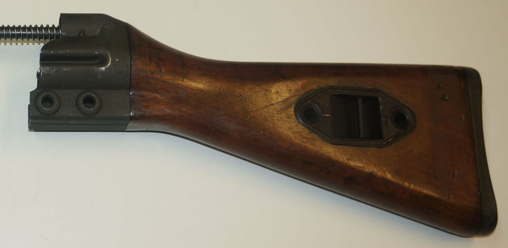 Bestehend aus Handschutz und Schulterstütze aus Nussbaumholz, einem schwarzen Griffstück aus Kunststoff sowie zwei Große Haltebolzen und ein Kleiner Haltebolzen.