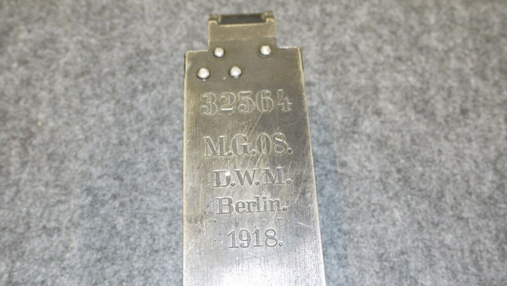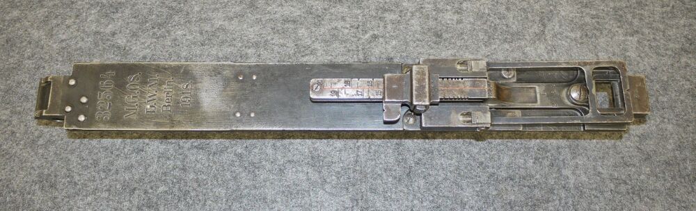 Original MG08 DWM Gehäusedeckel in leicht bis gut gebrauchtem Arsenalzustand. Komplett mit allen Visierteilen und Federn.