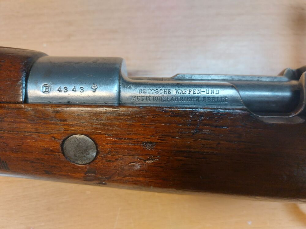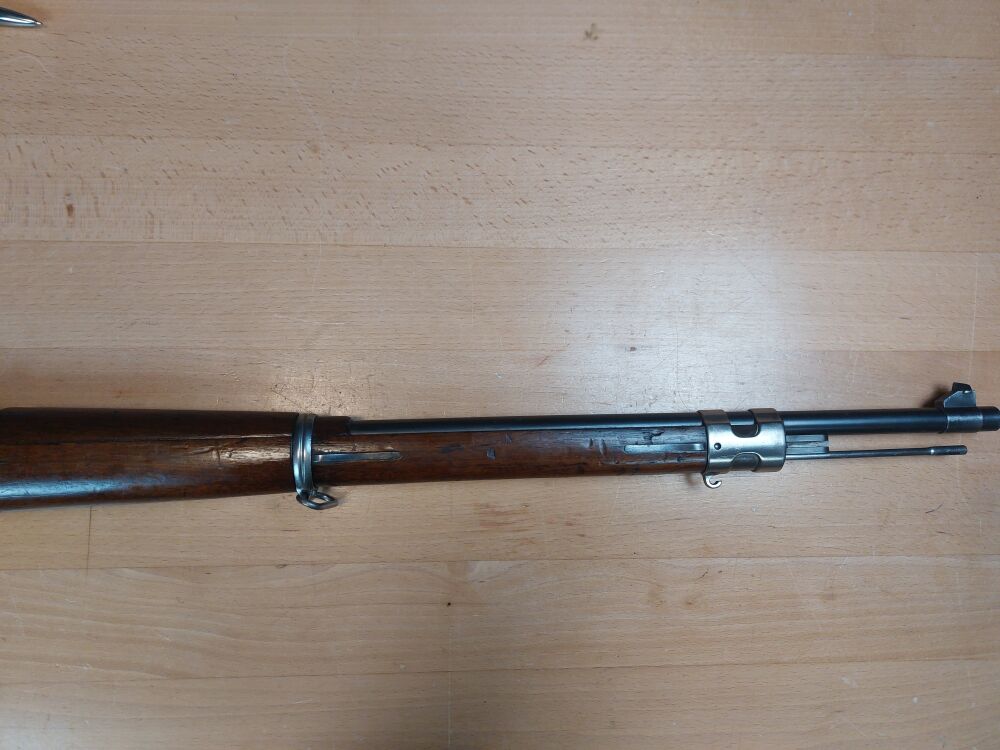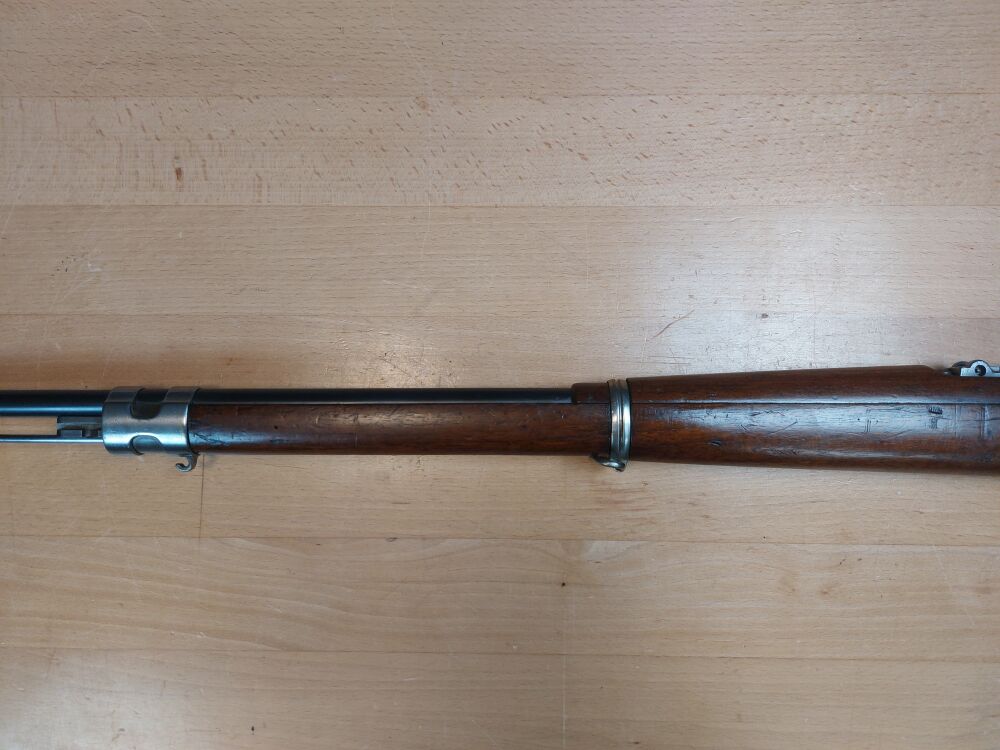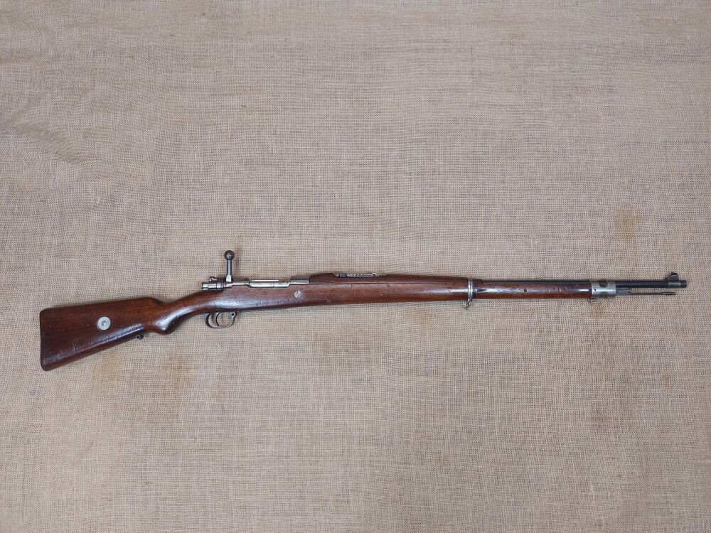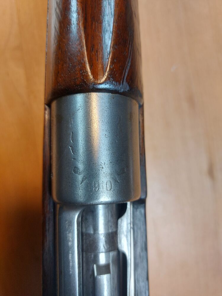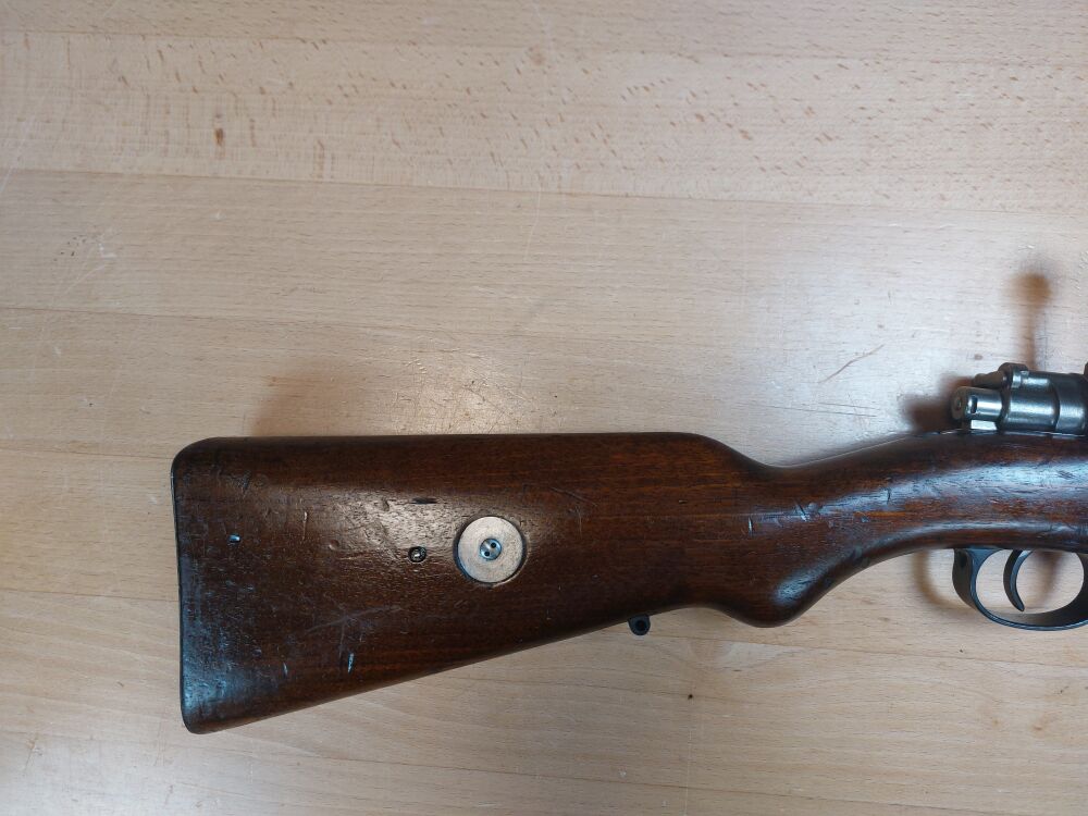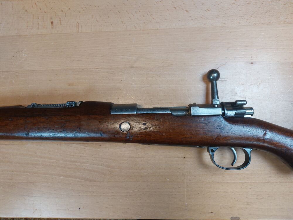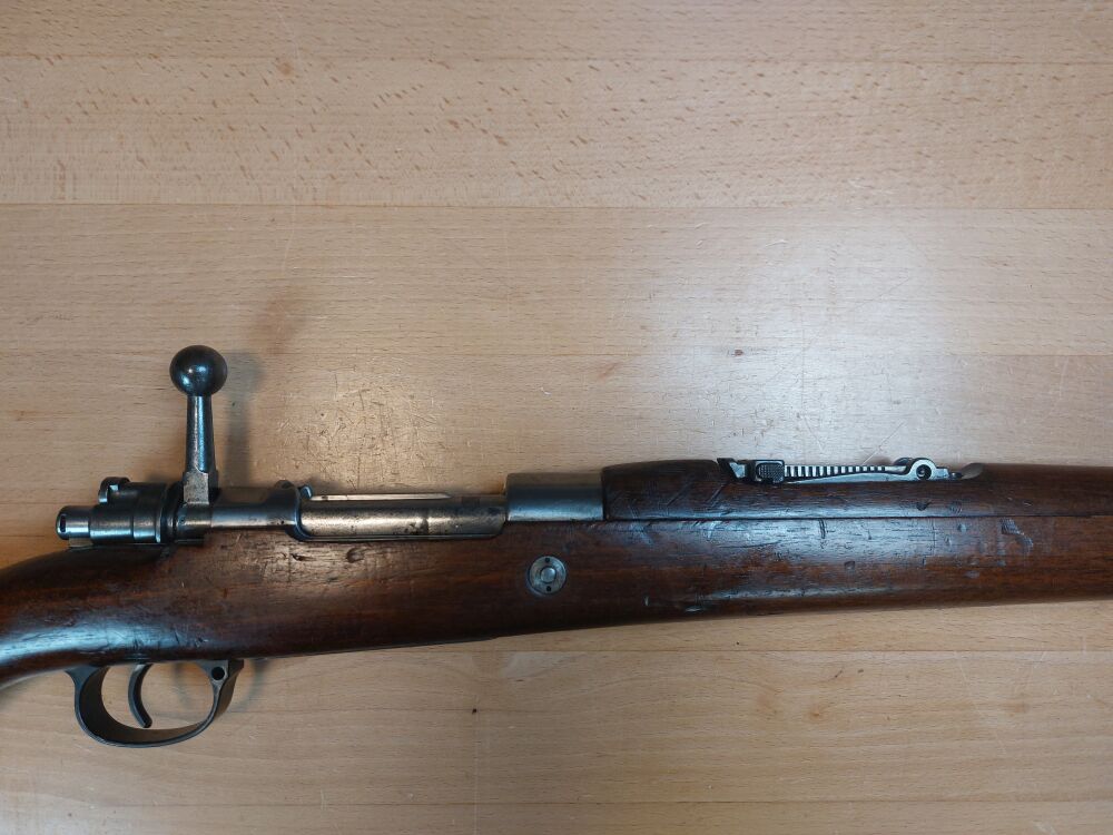 Ordonanzgewehr Deutsche Waffen und Munitionswerke Brasilien Mauser Modell 1910 Kaliber 7x57 Beschuss April 1987 Lauflänge 750 mm Schaftlänge 330 mm Gesamtlänge 1240 mm Lauf innen blank, Fel... ...weiterlesen