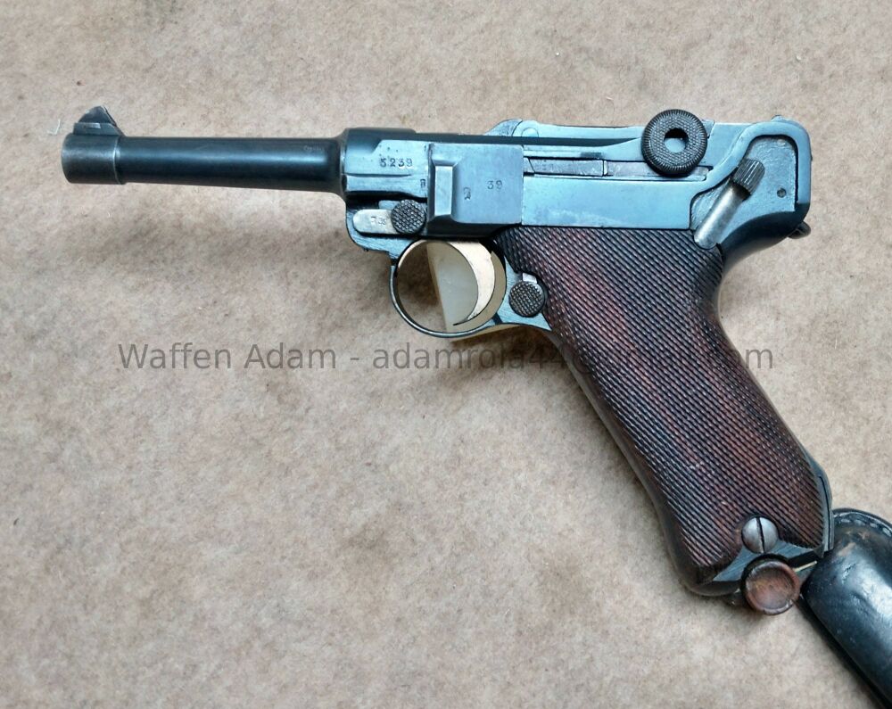 Erfurt P.08, sehr schöner Zustand, Lauf blank, inclusive Tasche, diese ungestempelt (Offiziersbeschaffung!?) , nummerngleiches, sehr gutes Magazin, makellose Nussholz Griffschalen mit sauberer Fischha... ...weiterlesen
