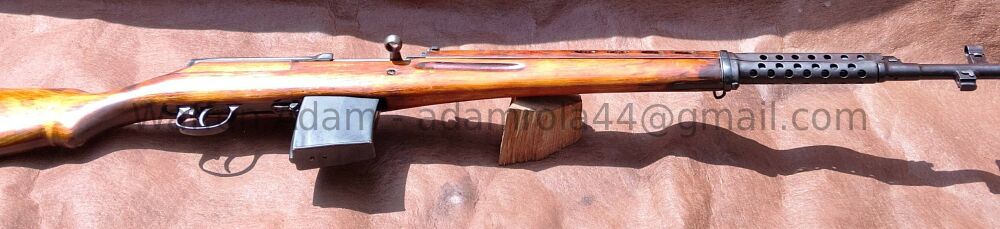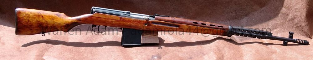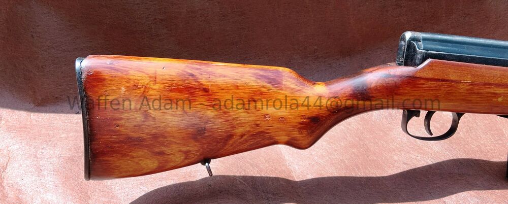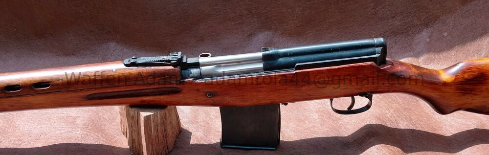 Halbautomatische Büchse, Ordonnanz Waffe, SVT 40, Kaliber 7, 62x54, Gasdrucklader, Gestempelt 1941, mit Bajonett Halter, Lauf rau, Zug Feld Profil jedoch gut vorhanden! zweireihiges Stangenmagazin für 10 Patronen, guter gepflegter Arsenal-Zustand. Voll Funktionsfähig. Gültiger Beschuss. Nummerngleich bis aufs Magazin.