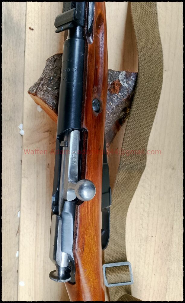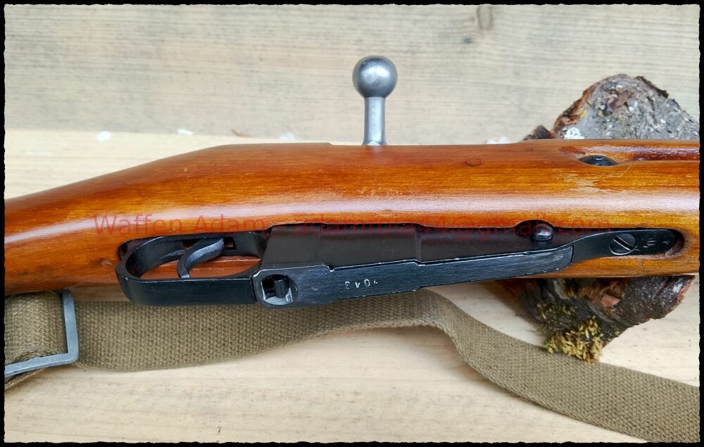Mosin Nagant Kurzgewehr mit Klappbajonett, Lauf leicht matt, altersbedingte Gebrauchsspuren, nummerngleich. Zustand 1 Lauf Note 3 ...weiterlesen