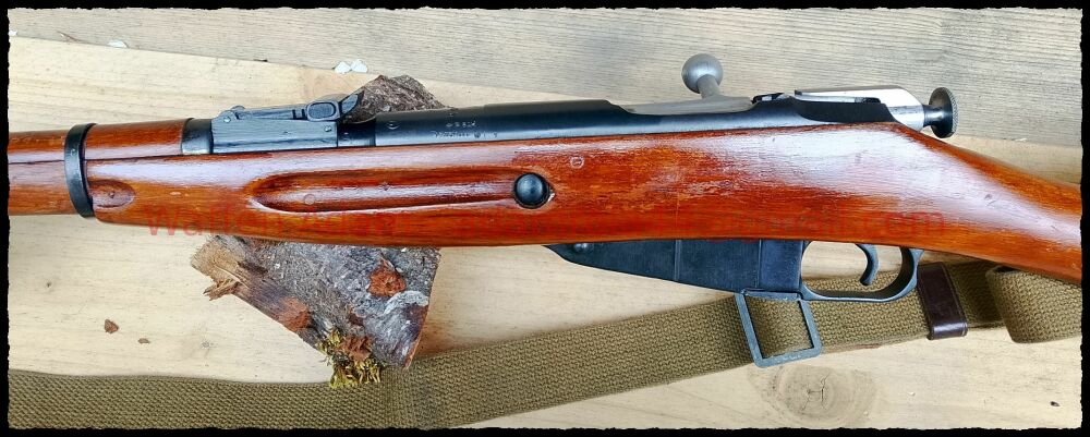 Mosin Nagant Kurzgewehr mit Klappbajonett, Lauf leicht matt, altersbedingte Gebrauchsspuren, nummerngleich. Zustand 1 Lauf Note 3