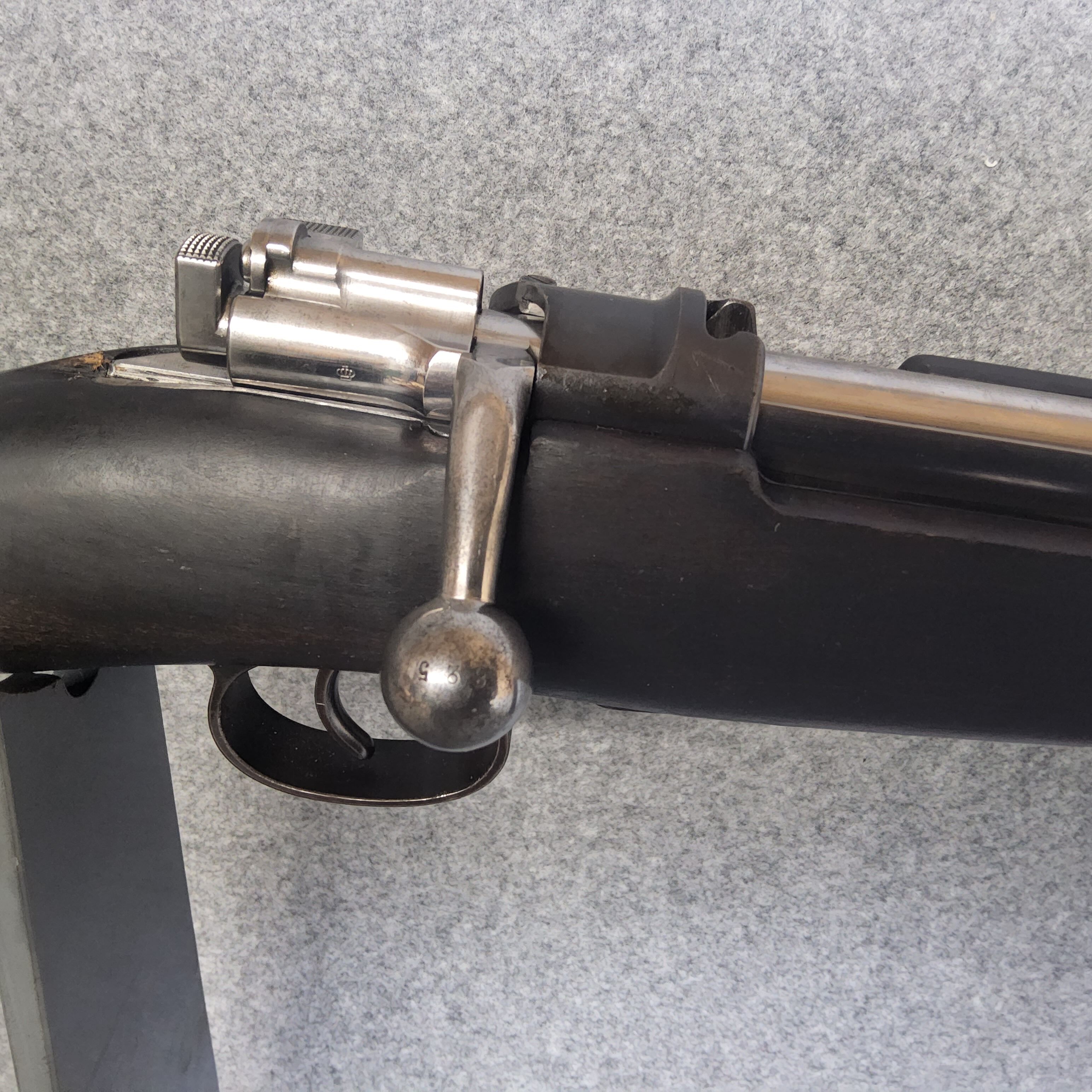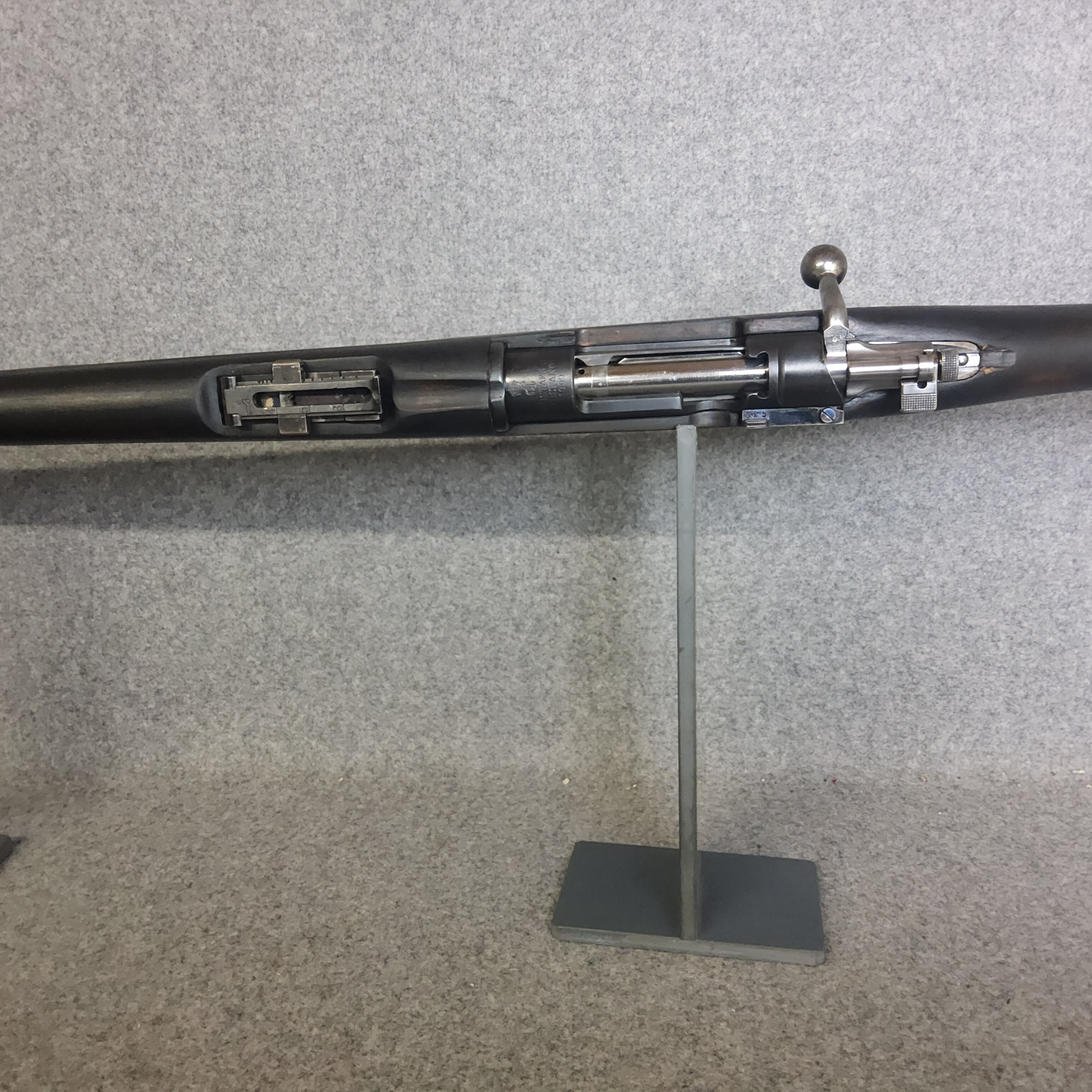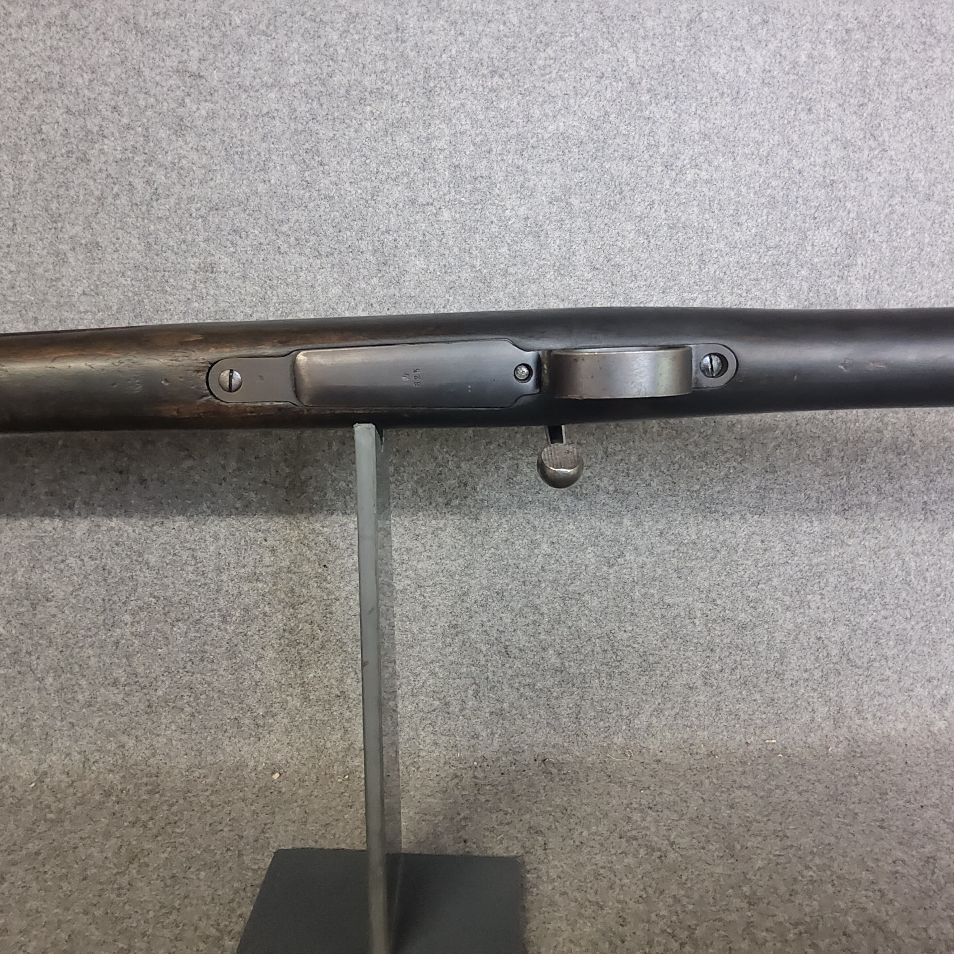 System mit Lauf u. Schloßteilen nrgl. ,Schaft mit Beschlagteilen nrgl. gutes Laufprofil, absolut blank. Gekröpfter Kammerstengel.Schaft dunkel geölt. ...weiterlesen