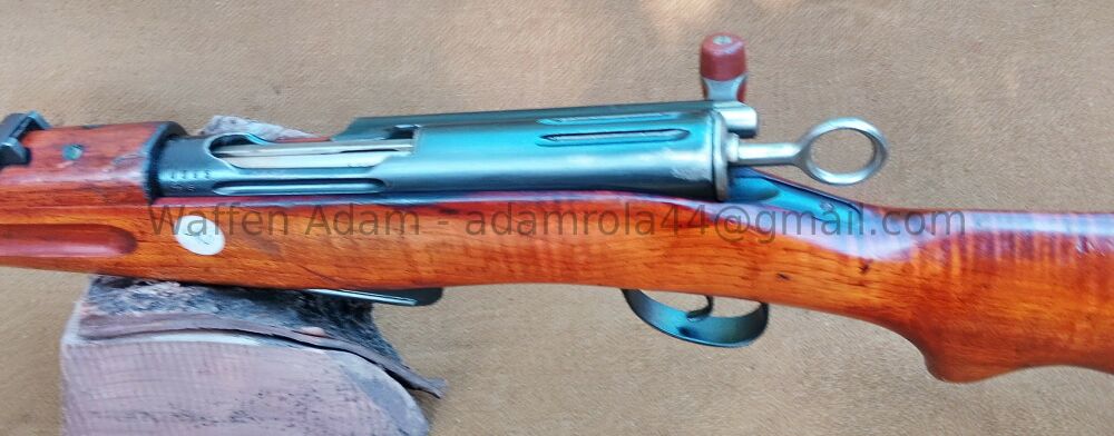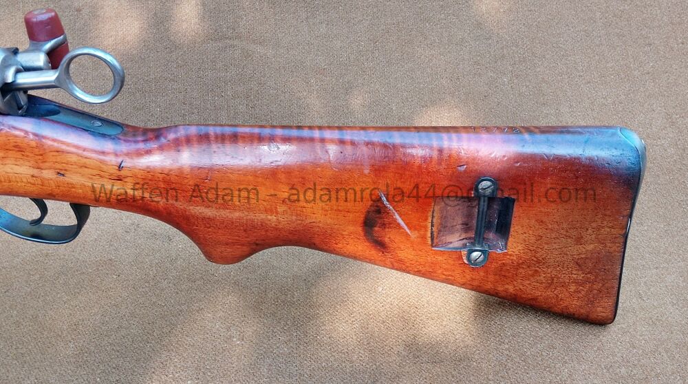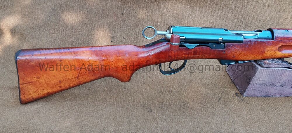 Karabiner K11 der Streitkräfte Schweiz, Schmidt Rubin Geradezug System mit vorne liegenden Verriegelungswarzen. Sehr schöne Erhaltung mit spiegelndem Lauf. Original Mündungsschoner. Sammlerwaffe und ... ...weiterlesen