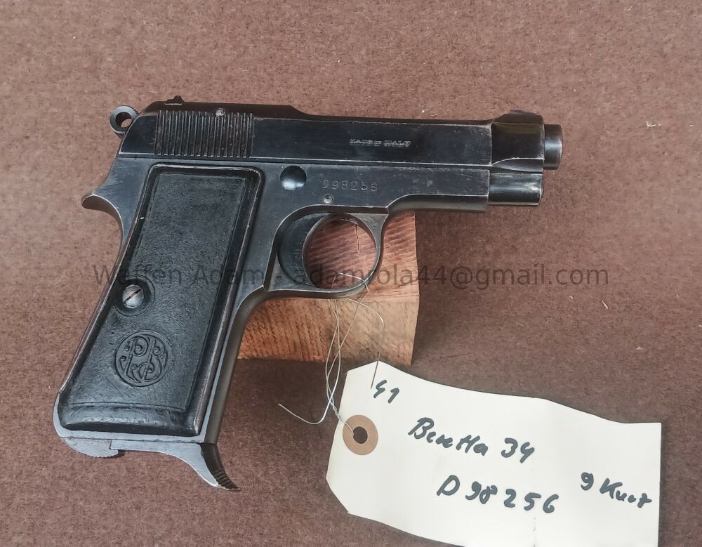 Beretta Dienstpistole Modell 34, Kaliber 9mmKurz. Blanker Lauf.