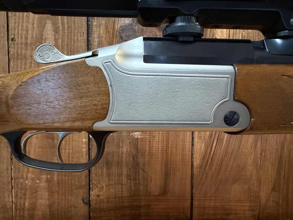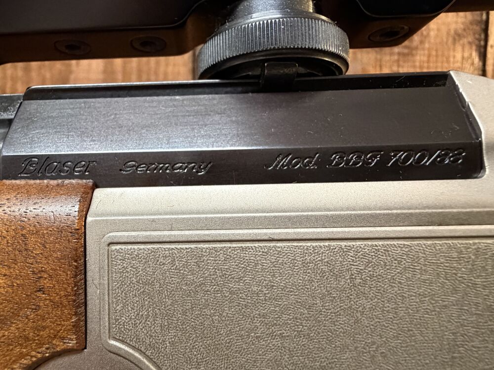 Blaser Bockbüchsflinte Model 700/88 im Kaliber 30-06 und 12/70 . Die Waffe befindet sich in in einem sehr guten Zustand (Schrankwaffe, siehe Bilder), es sind keine Anzeichen einer Schussbelastung zu erkennen. Handspannung,Feinabzüge.