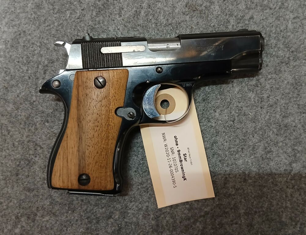 Angeboten wird eine Halbautomatische Pistole der Firma Star (Starfire). Die Pistole weist entsprechend ihres Alters einige äußere Gebrauchsspuren auf, der Lauf befindet sich in einem guten Zustand. Die Waffe ist in unserer hauseigenen Werkstatt durchgecheckt und Probe geschossen.