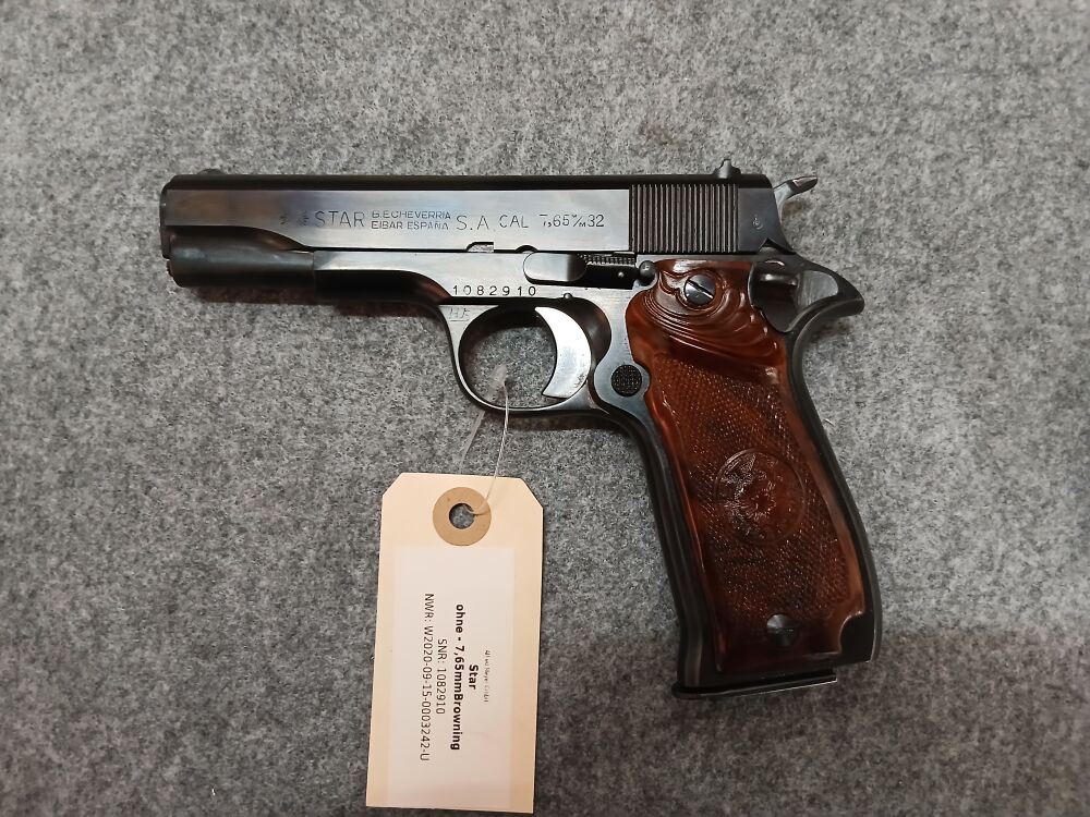 Angeboten wird eine Halbautomatische Pistole der Fa. Star im Kaliber 7,65mmBrowning. Die Pistole ist in einem guten Zustand und weist nur einige wenige Gebrauchsspuren auf, der Lauf befindet sich in einem guten Zustand. Die Waffe ist durchgecheckt und Probe geschossen.
