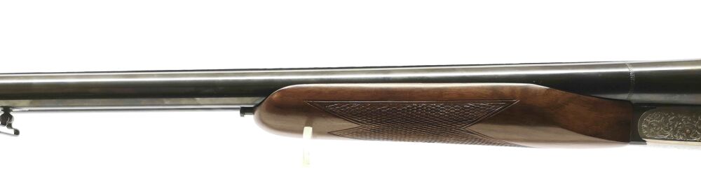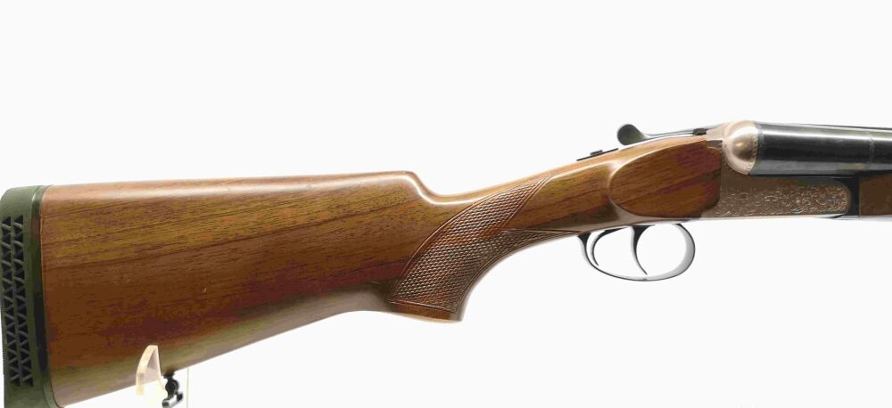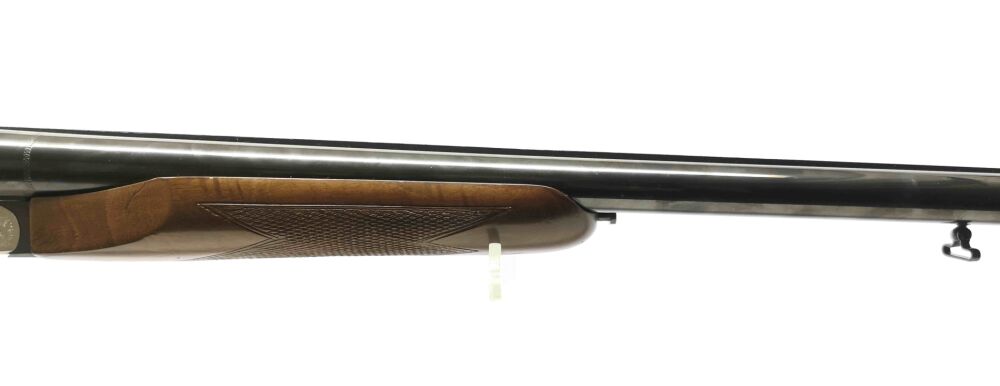 N3850 Zabala - ohne - Note 2 - Gänseflinte (Doppelflinte) von Zabala Hermanos Spain im Kal. 10/89, Doppelabzug, sehr massive Läufe, Lauflänge 80cm, jeder Lauf mit *** Choke (vermutlich Zylinderbohrung nach altem Chokebewertungssystem), Perlkorn, Sicherung auf Kolbenhals, ventilierte Gummischaftkappe, Riemenbügelösen, guter und gepflegter Zustand, nur leichte Eindruckstellen am Hinterschaft erkennbar, mit Auszieher *** EWB-pflichtig ***